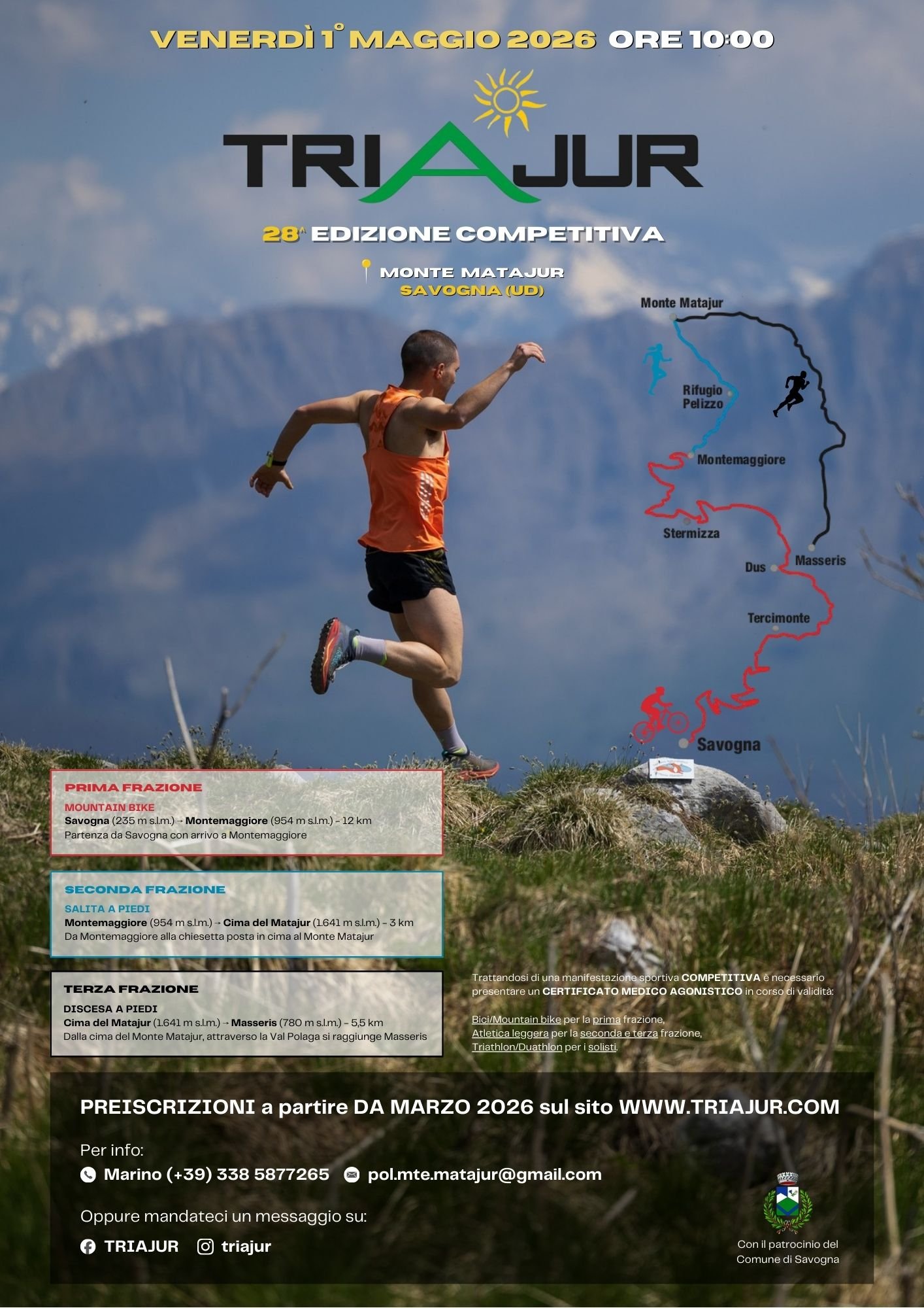 Wie jedes Jahr, auch dieses Jahr organisiert am ersten Mai organisiert die Polisportiva Monte Matajur mit Hilfe zahlreicher lokaler Freiwilligenverbände den Triajur. Es handelt sich um eine Sportveranstaltung mit Wettbewerbscharakter, die aus drei Fraktionen besteht, für die jeweils einer der drei Fraktionsmitglieder verantwortlich ist. Die physisch und psychisch am besten vorbereiteten Teilnehmer dürfen den gesamten Wettbewerb allein bestreiten.