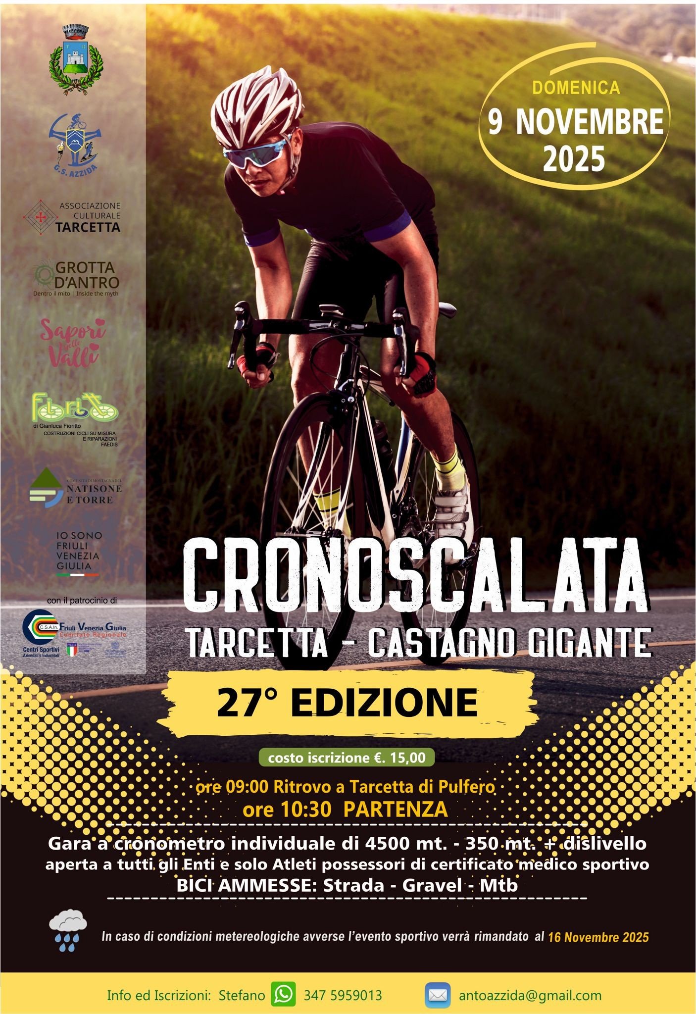 Ein Einzelzeitfahren über 4,5 km mit 350 Höhenmetern, organisiert unter der Schirmherrschaft von CSAIn FVG mit professioneller Zeitmessung.