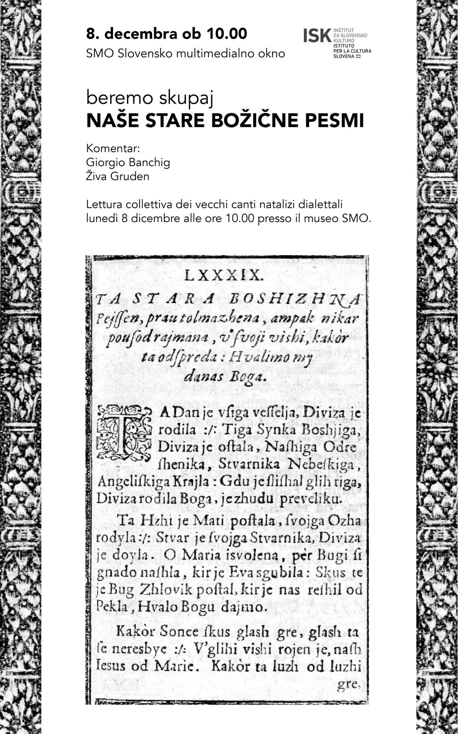 On Monday, December 9th at 10:00 AM, a collective reading of old Christmas songs written in the local dialect will take place in the SMO Museum spaces.