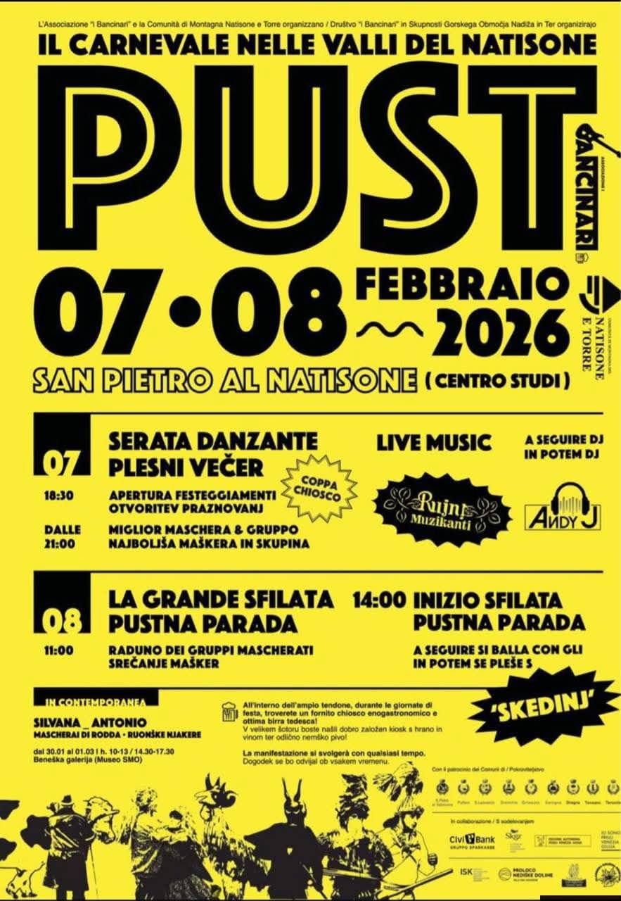 The Pust of San Pietro al Natisone/Špeter is one of the most popular events in the Natisone Valleys. It is held in San Pietro al Natisone/Špeter, where groups of local masks and those from neighbouring valleys and towns as well as from beyond the border parade through the town, often interacting with the public that crowds the town lining the parade route.