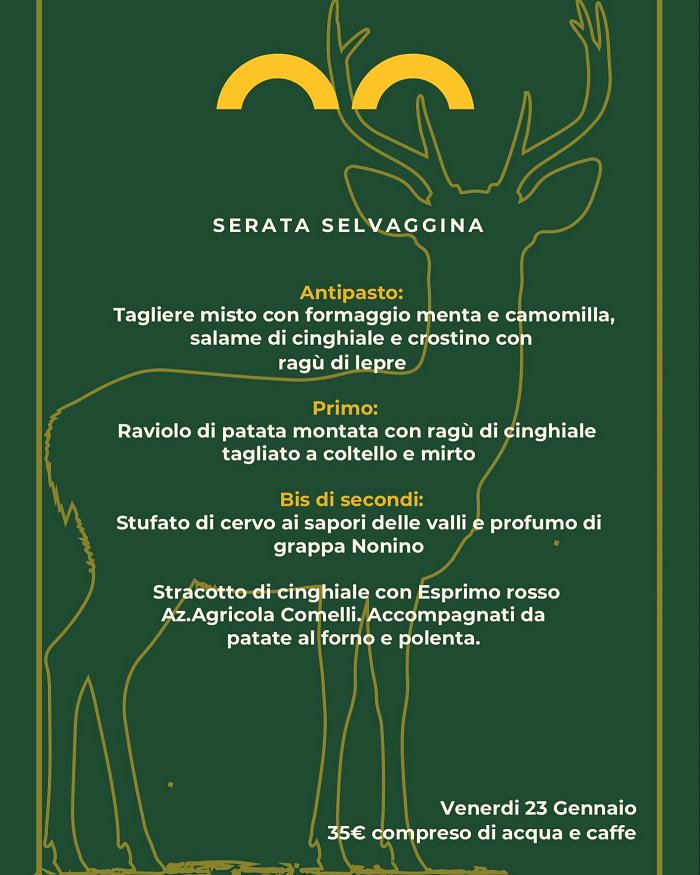 On Friday, January 23, Chiosco al Ponte invites you to enjoy a fixed-price menu featuring game meat.