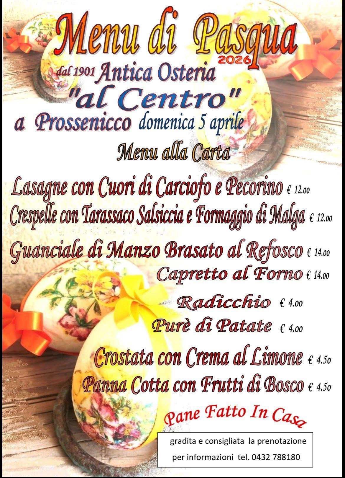 On Sunday, April 5, 2026, a special à la carte menu awaits you at the at the Antica Trattoria al centro in Prossenicco/Prosnid.