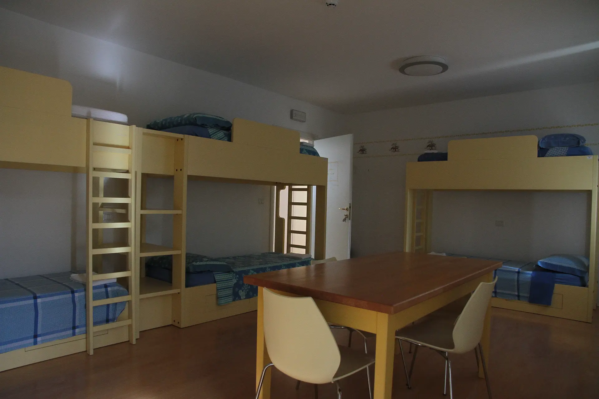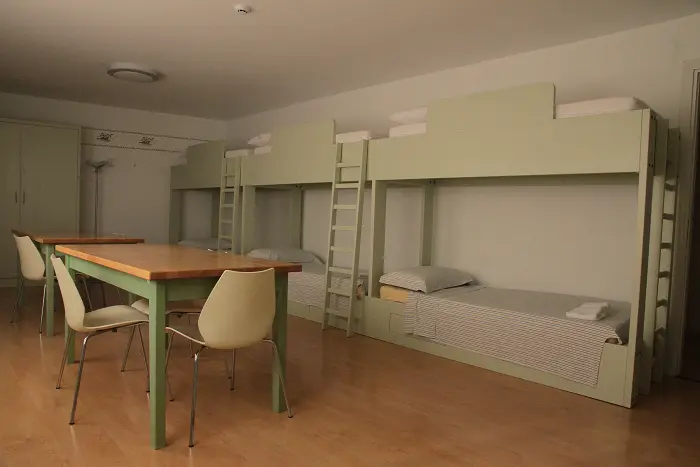 A guesthouse with four rooms with shared bathroom for a total of 20 bunk beds.