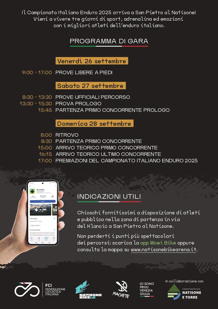 - 17:00 premiazioni Campionato Italiano 2025