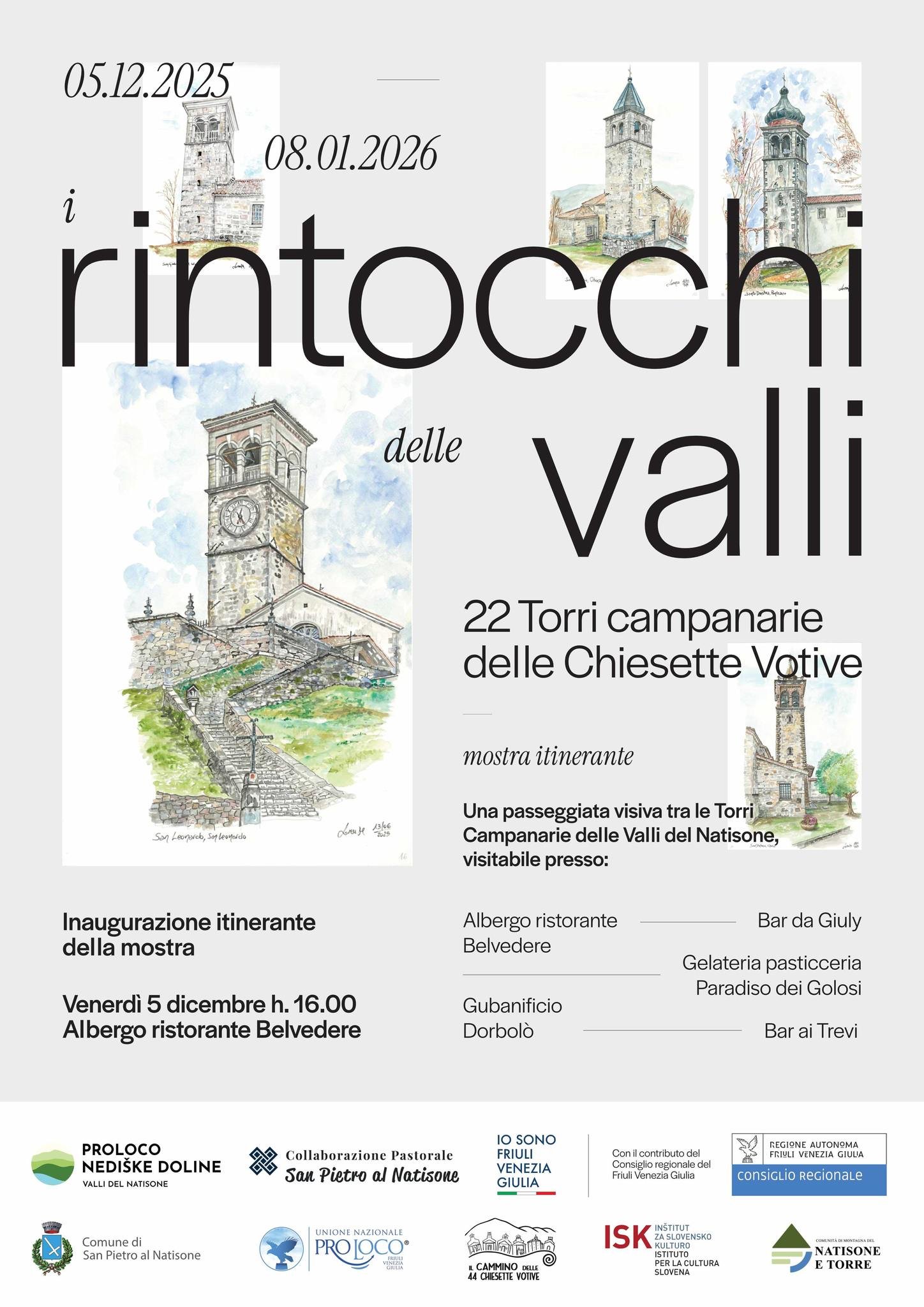 Vizualni sprehod med zvoniki Nadiških dolin, razstava je na ogled na naslednjih lokacijah:
