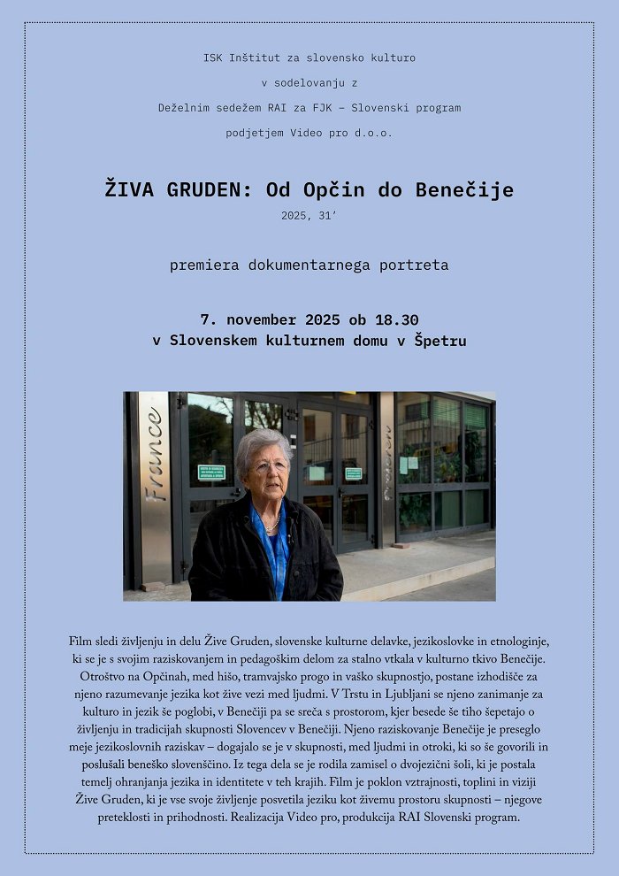 Premiere screening of the docufilm Živa Gruden: From Opčine to Benečija