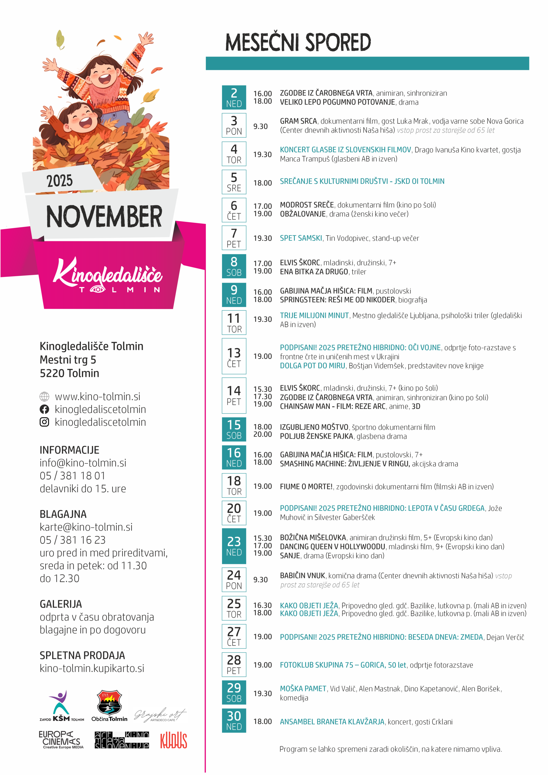 KINOGLEDALIŠČE TOLMIN Mestni trg 5, 5220 Tolmin (Slovenia) +386 (0)5 38 11 623