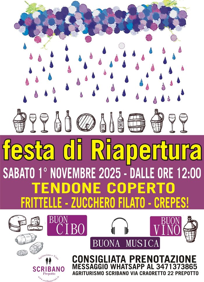 Sabato 1° novembre l'agriturismo Scribano vi aspetta dalle 12:00 in poi a Craoretto per la festa di riapertura!