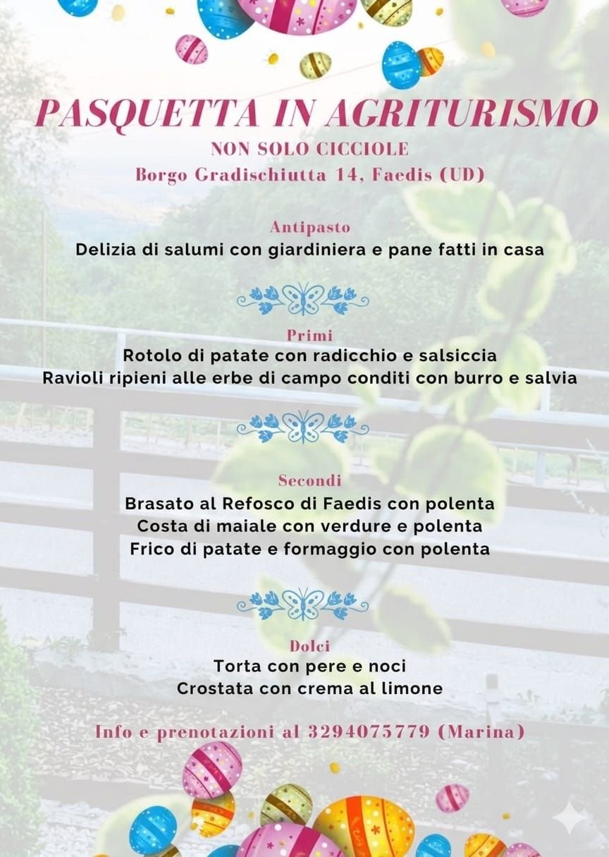 Lunedì 6 aprile presso l'agriturismo Non solo cicciole a Gradischiutta (Povila) vi aspetta un menù dedicato.