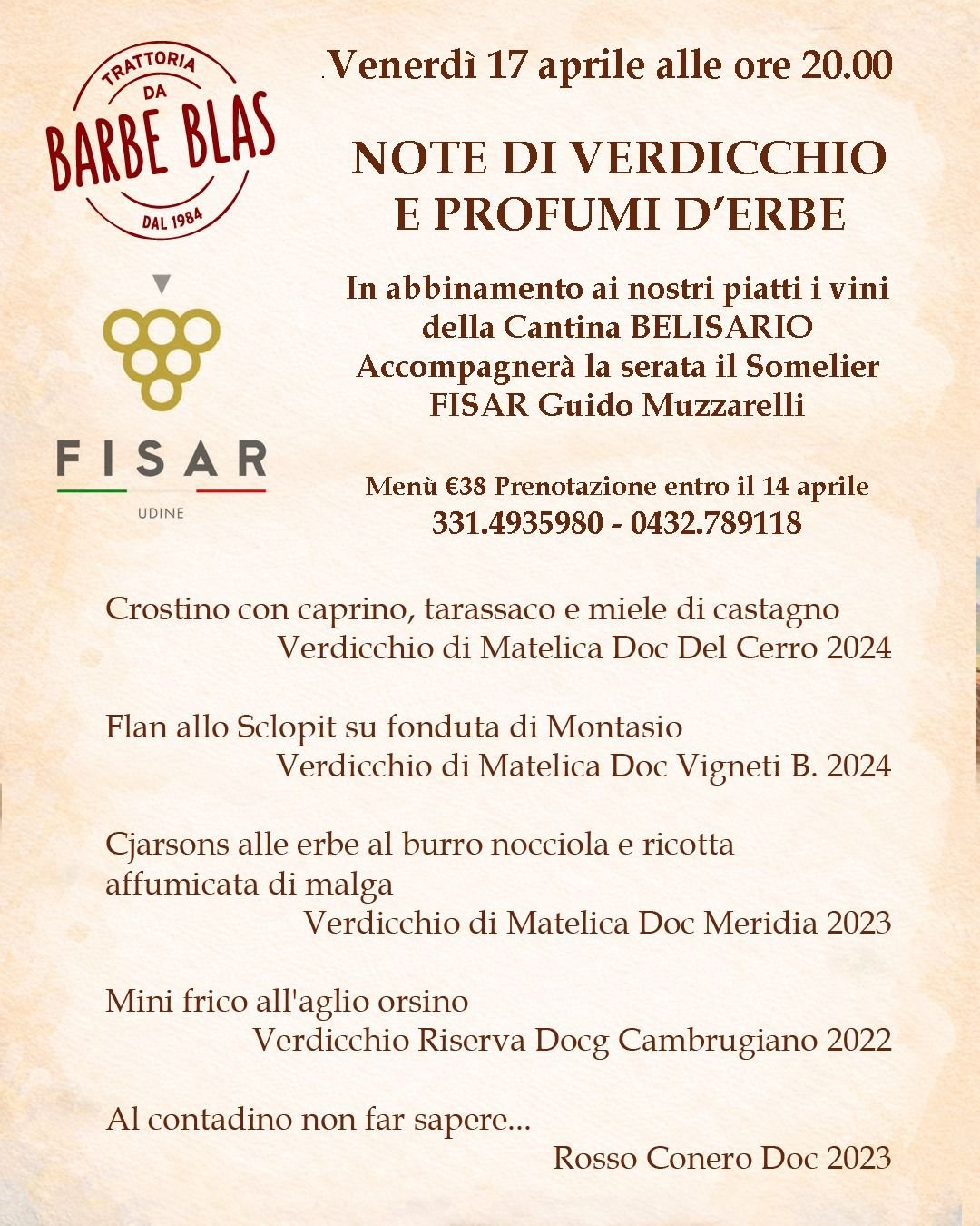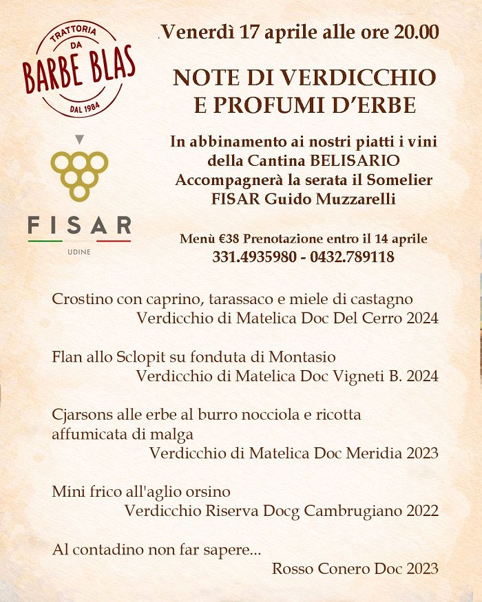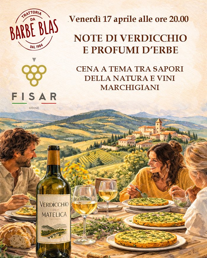 V petek, 17. aprila, vas v gostilni Trattoria da Barbe Blas čaka tematska večerja z okusi narave in vini iz italijanske dežele Marke.